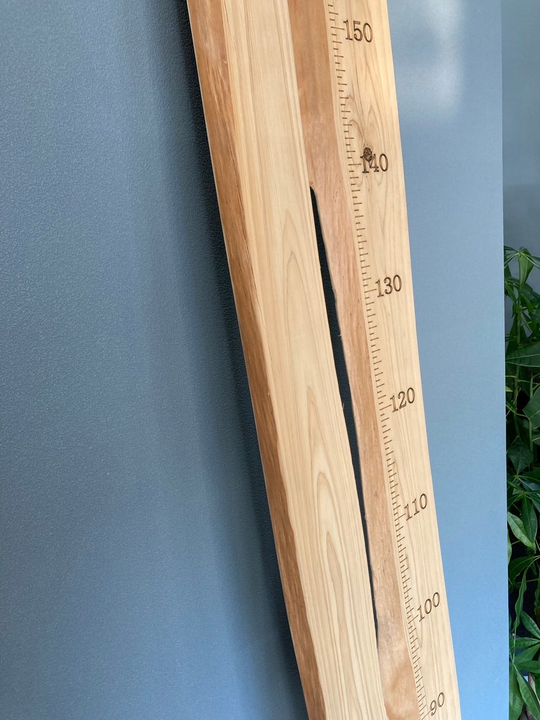 自然の個性をそのまま活かしたこの身長計は、温かみのあるデザインが魅力で、インテリアにも馴染みます。